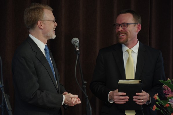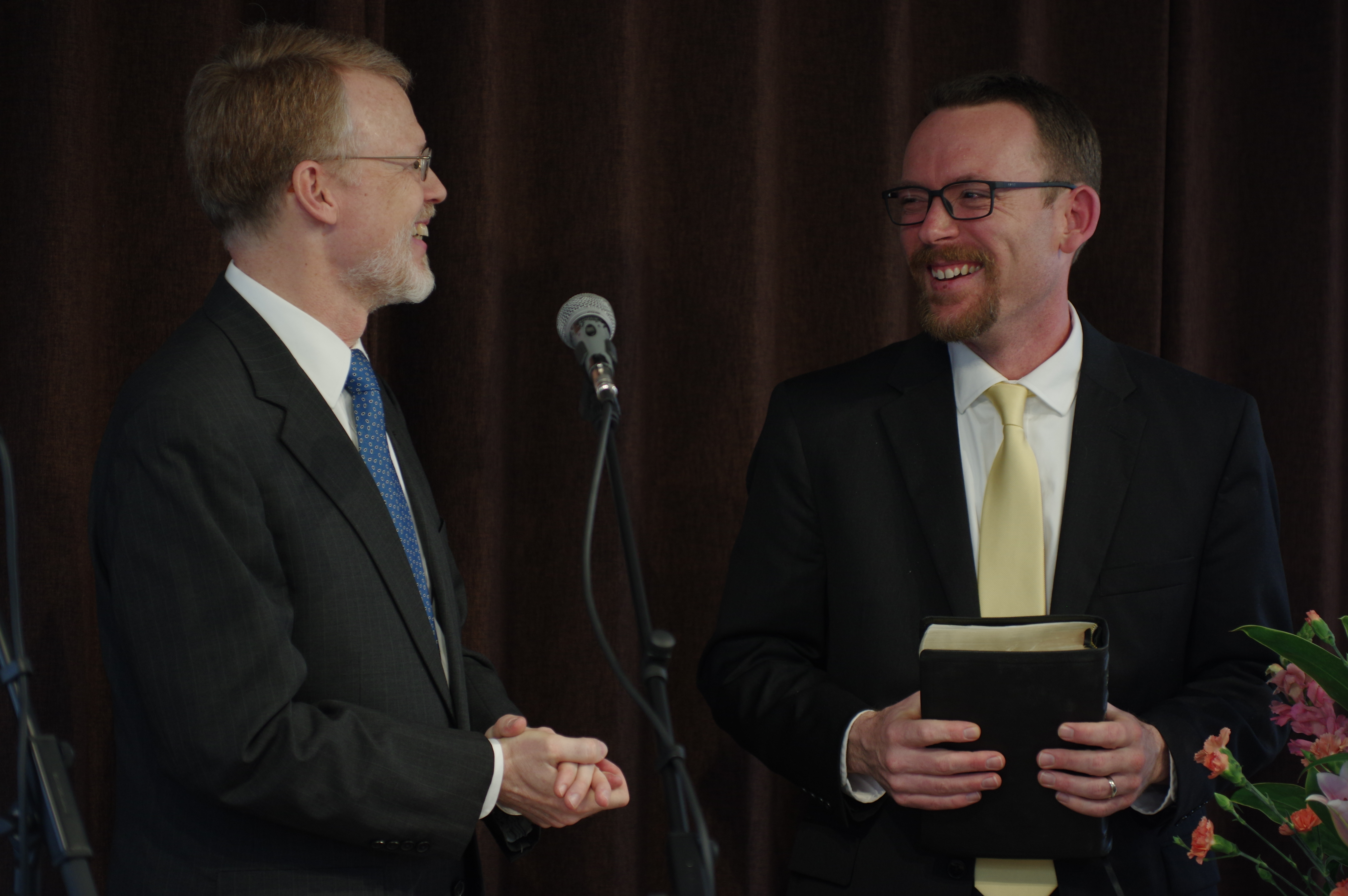 For the past six years my colleague Craig Chapin has served as the interim president of CBS. He has been invaluable for the seminary and a true friend to me as I’ve prepared to step into this role. Here he is presenting me with a Bible that our first president donated to the seminary.